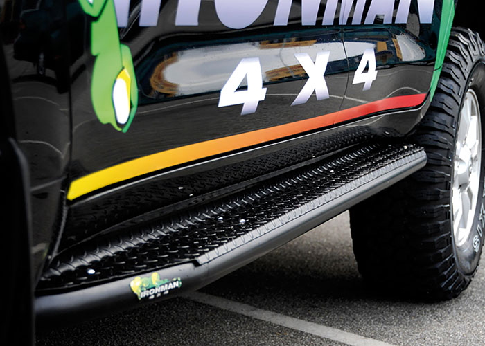 Protecting your vehicle can sometimes be a low priority, when in fact it can be the most expensive repair on the car! Ironman 4x4 steel powder coated side steps and rails not only give your vehicle protection but also aid you to get in and out of your vehicle. The vehicles body panel protection is an added bonus. Whether in the outback rubbing along dirt walls, or the big smoke where shopping trollies bounce off your paint work, Ironman 4x4 side steps and rails are a smart investment!